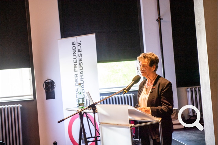 grund dieses besuches war die verleihung des kunstkritikerpreises "museum des jahres 2020" an das neue bauhausmuseum.